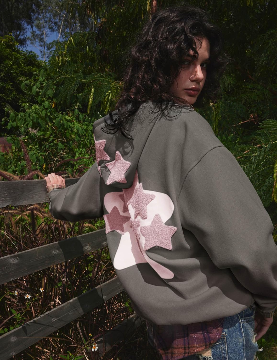 Aelfric Eden Womens Graphic Hoodies Pink Star Print Hoodie Unisex Oversized Hoodies Long Sleeve Pocket Pullover