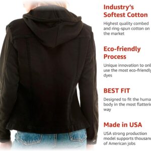 Amazing Ladies’ Denim Jacket with Fleece Hoodie – Presents for Women – Fashion Women Clothing – Light Washed, L