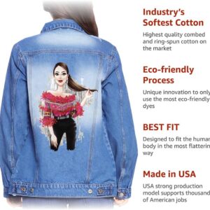 With super soft fabric and a modern silhouette, you’ll never leave home without Fashion Illustration Women’s Casual Denim Jacket. Whether autumn/winter or spring/summer, it is a must-have for any wardrobe. We’re constantly updating our clothing fabric and style to meet our people’s needs and to be consistent with our goal of bringing people a healthy and beautiful life. Cool Art Clothing is a great choice.