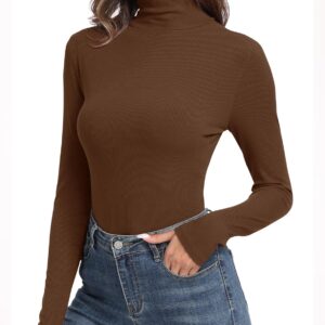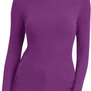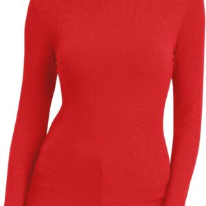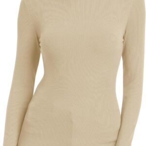GEMBERA Womens Long Sleeve Mock Turtle Neck Basic Slim Fitted Ribbed Knit Tops Shirts