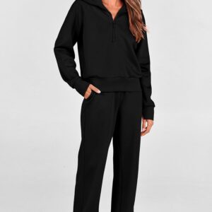 PRETTYGARDEN Women’s 2 Piece Outfits Casual Lapel Half Zip Sweatshirts And Wide Leg Pants Tracksuit Sets