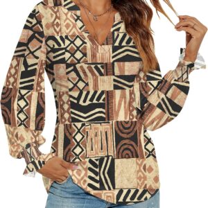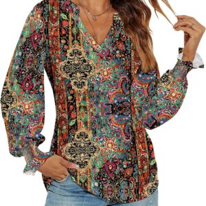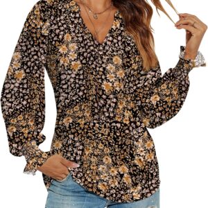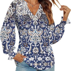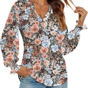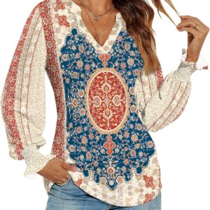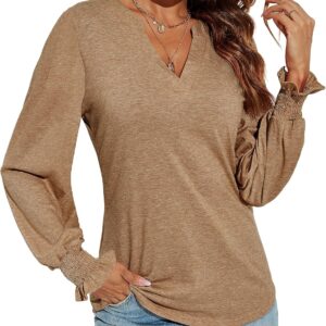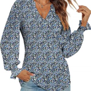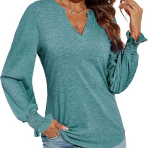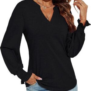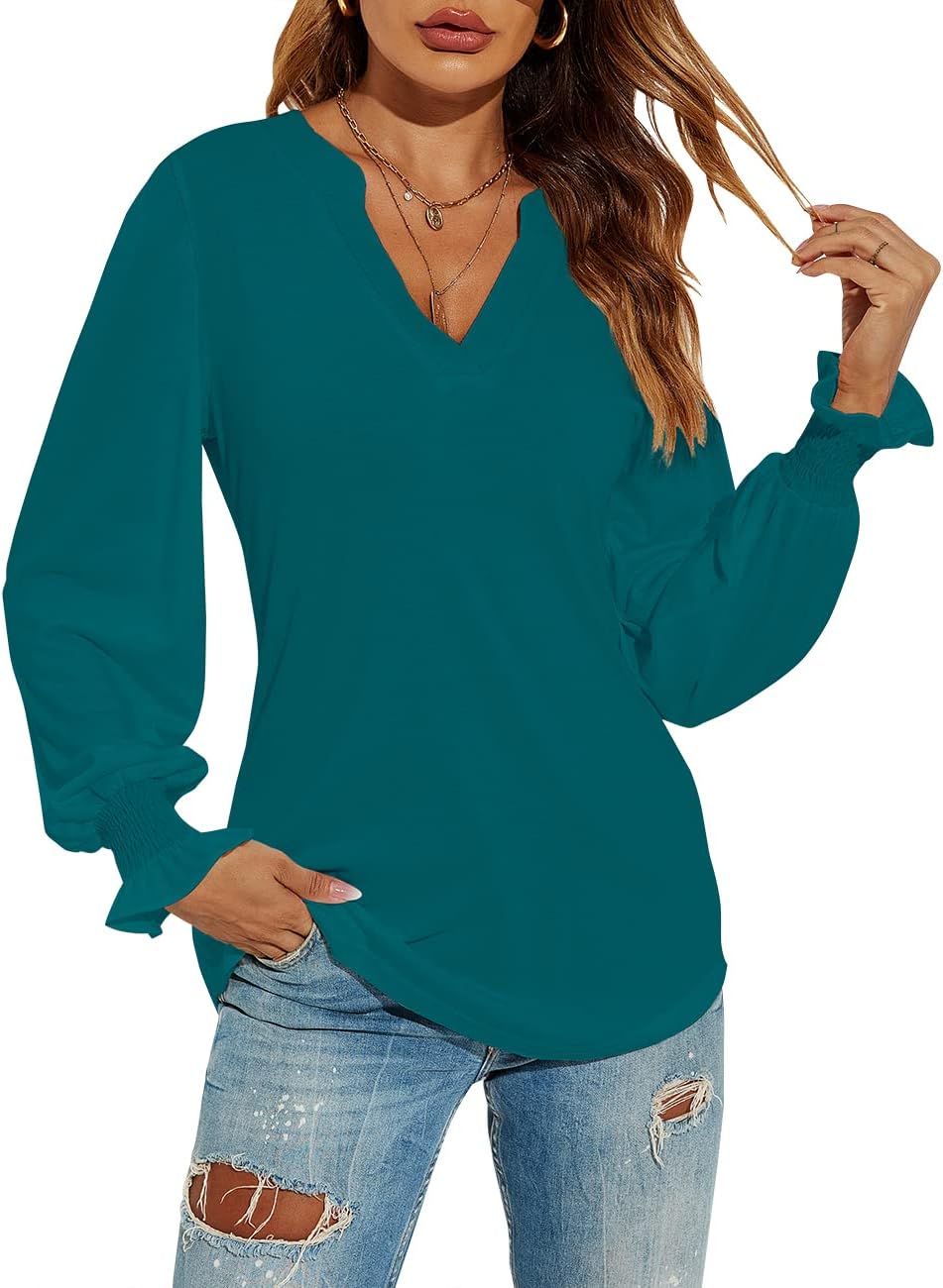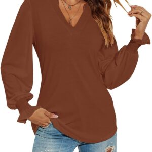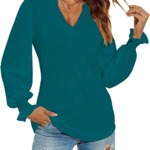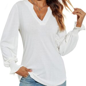 Romanstii Women’s Casual V-Neck T-Shirts Loose Puff Long Sleeve Tops Tunic Blouses