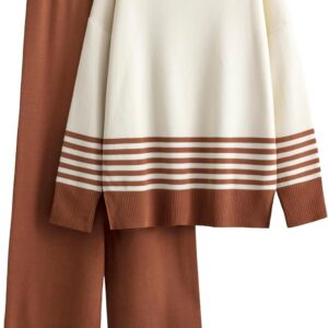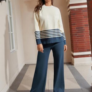 Long sleeve matching sets available for multi colors, pullover knitted tops and wide leg flowy pants can be worn seperately, fashion and versatile