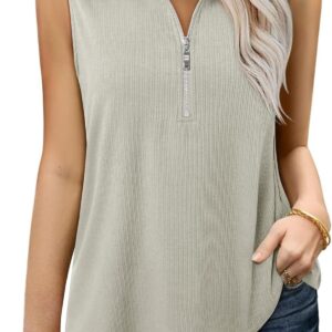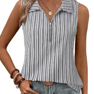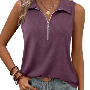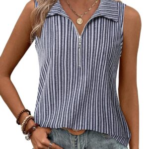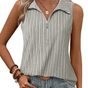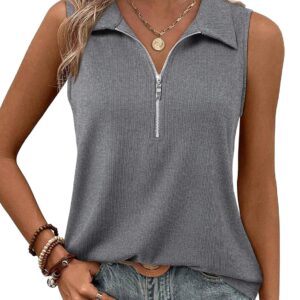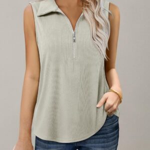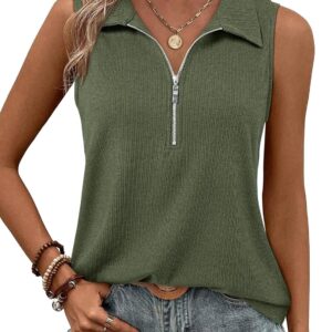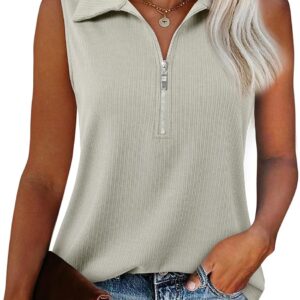 Vivilli Tank Tops for Women Spring Tops Summer Ribbed Collared Polo Shirt Zipper