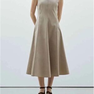 - Design: The classic sleeveless and round neck design gives this dress a timeless, minimalist look. The slim fit gently hugs your curves without being too tight, enhancing your figure. The knee-length or midi hemline (depending on the style) adds an elegant touch, and the clean lines make it suitable for various body types. Some styles feature delicate ribbed trim or subtle side slits for an extra hint of style.