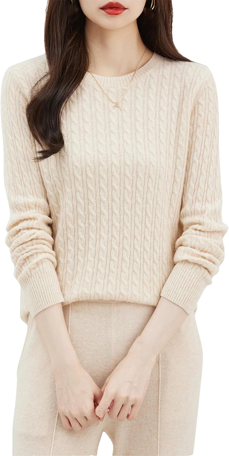 Women’s Loose Wool Sweater Crew Neck Warm Pullover Long Sleeve Knit Women Clothing