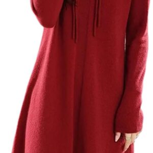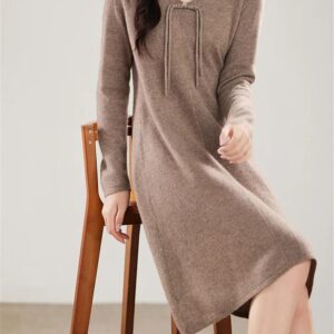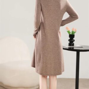 Women’s Winter Wool Knitting Sweaters Dresses Fashion V-Neck Length Warm Dress Female Clothing