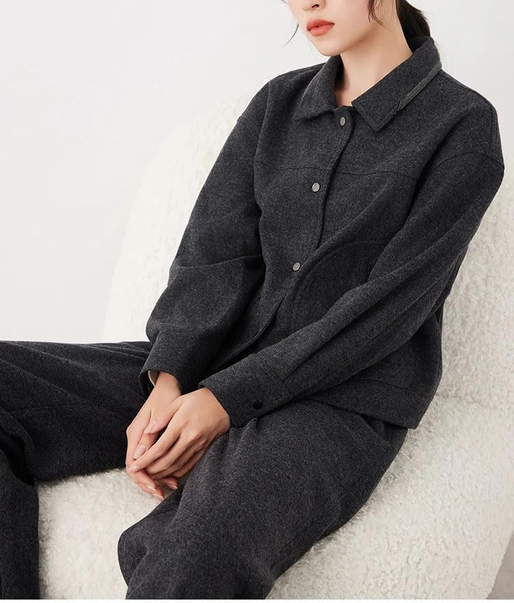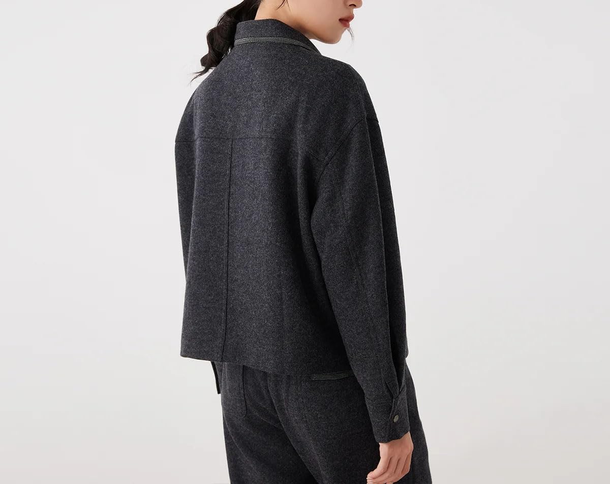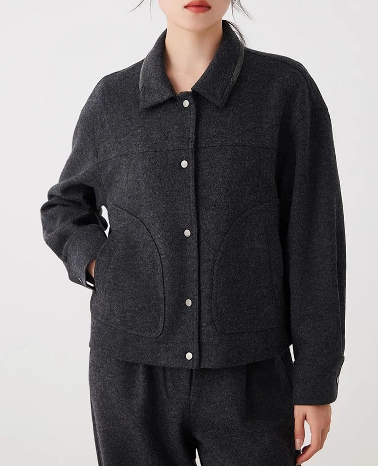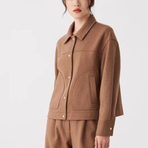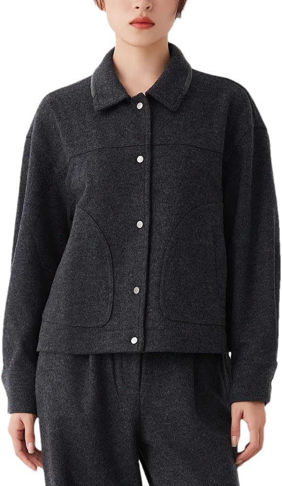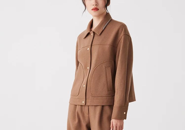 Wool Cotton Blend Turn-Down Collar Woolen Coat Fashion Single Breasted Women’s Clothing