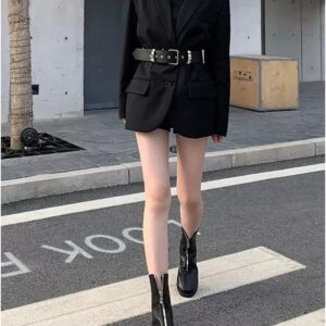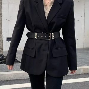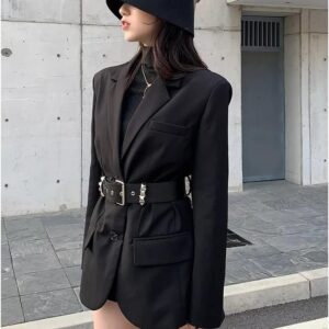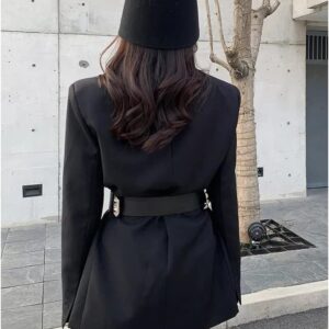 YWMLFZ Black Blazers for Women Notched Collar Long Sleeve with Sashes Solid Slim Female Fashion Clothing