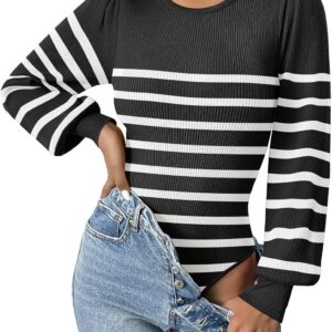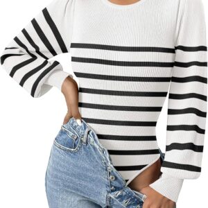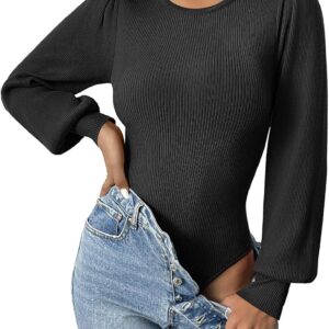 Features—Crewneck/Puff Long Sleeve/Rib Knit/Bodysuit Style